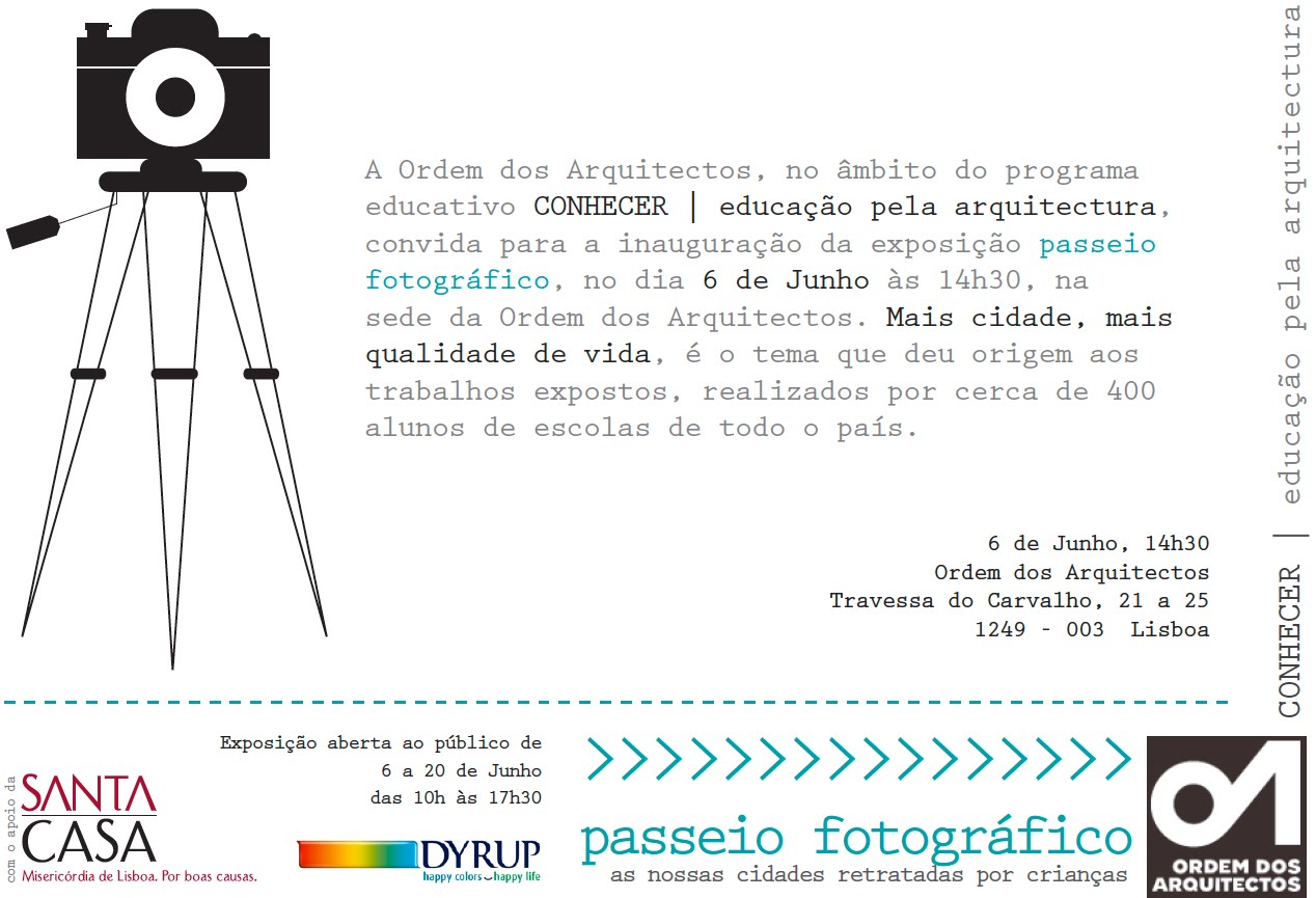 O Passeio Fotográfico nasce da vontade que o CONHECER tem em desenvolver um trabalho que valorize a importância da participação pública na vida urbana. Um trabalho que envolva a escola, comunidades locais e público em geral nas questões da arquitectura e cidadania, motivando-as para a importância das suas responsabilidades, deveres e direitos na organização e gestão das cidades e espaços públicos.